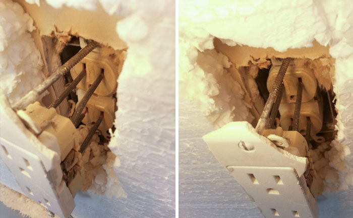 Debido a una inundación, el agua entró en el mecanismo y lo cortocircuitó. Levantó la plataforma y este fue el resultado.