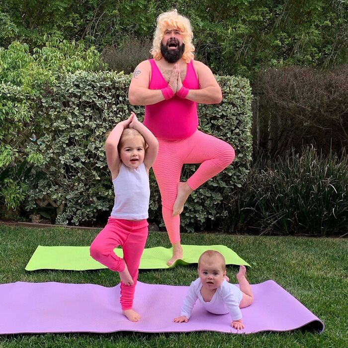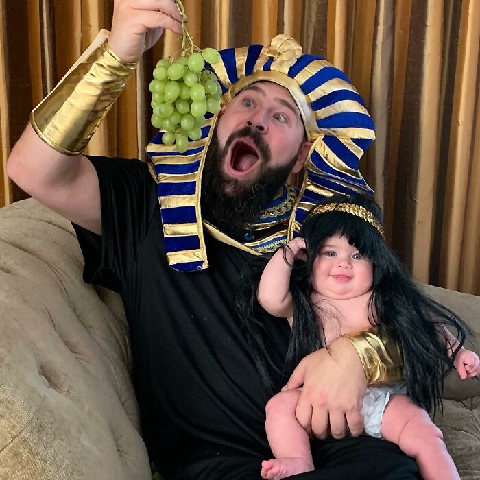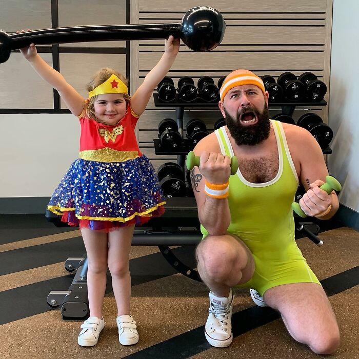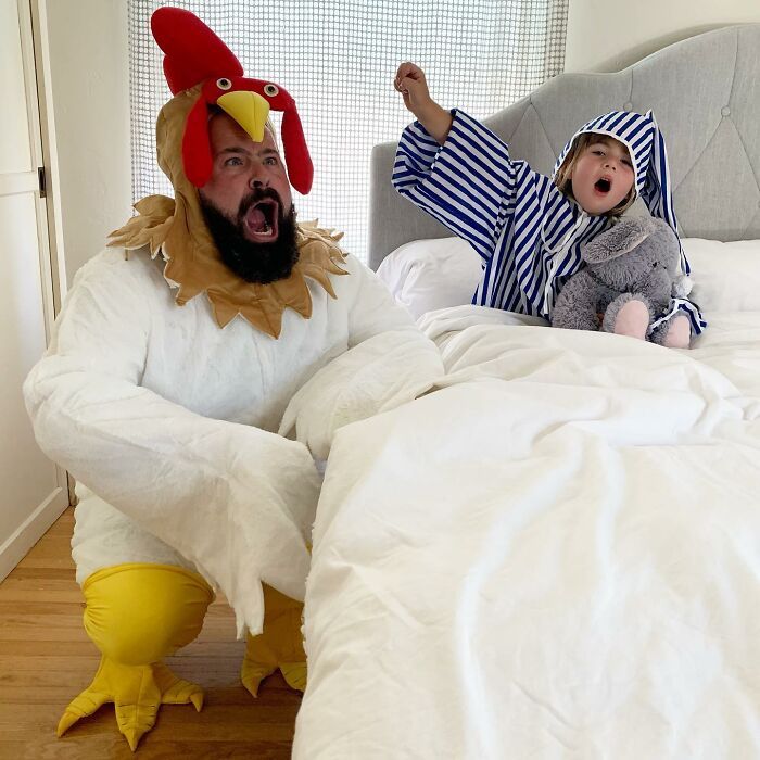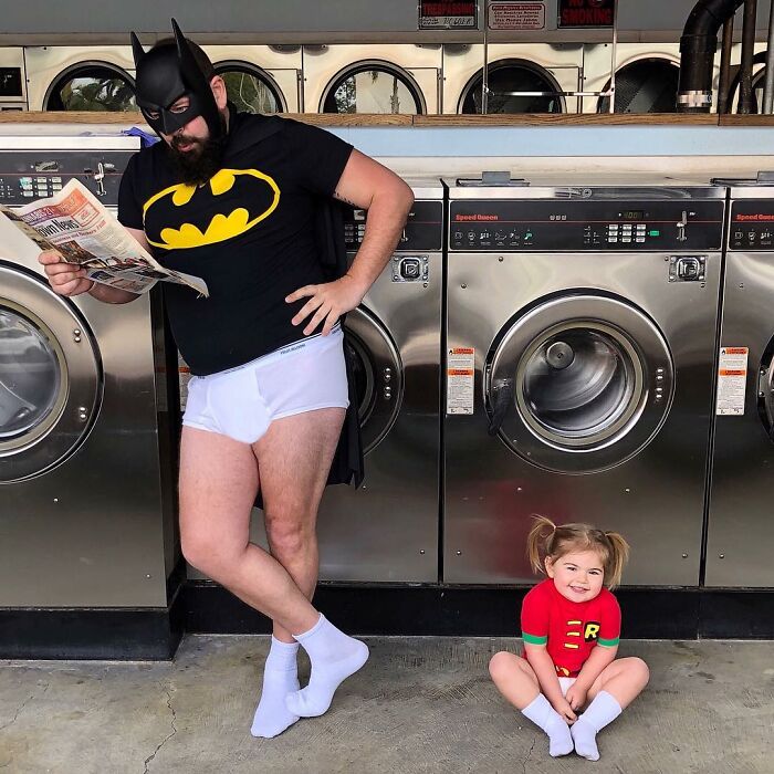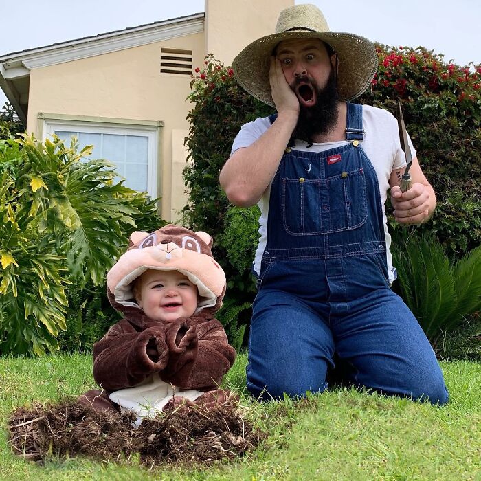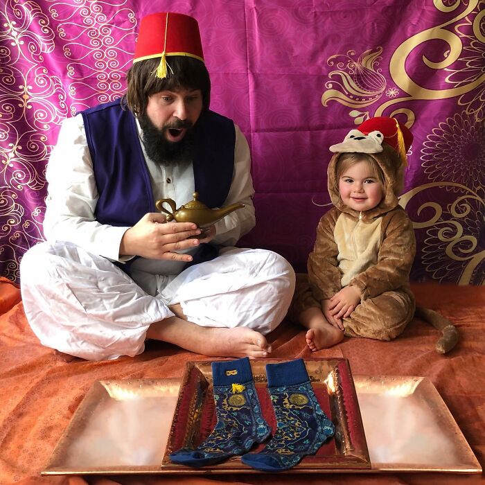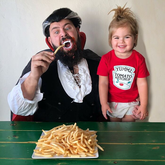Jugar con los niños o participar en actividades comunes ayuda a fortalecer las relaciones, y por el número de disfraces que ha hecho esta familia, podemos suponer que su vínculo es bastante fuerte. Sholom comentó: "A los niños les encanta hacerse lo que en casa llamamos 'fotos tontas con papá'. Realmente es solo una extensión del tiempo de juego que compartimos juntos, y cuando uno acumula la cantidad de disfraces y accesorios como los que tenemos en nuestra casa, cada momento tiene la posibilidad de ser divertido."