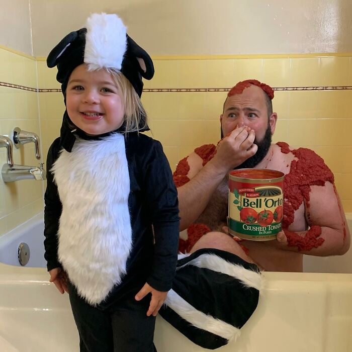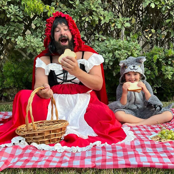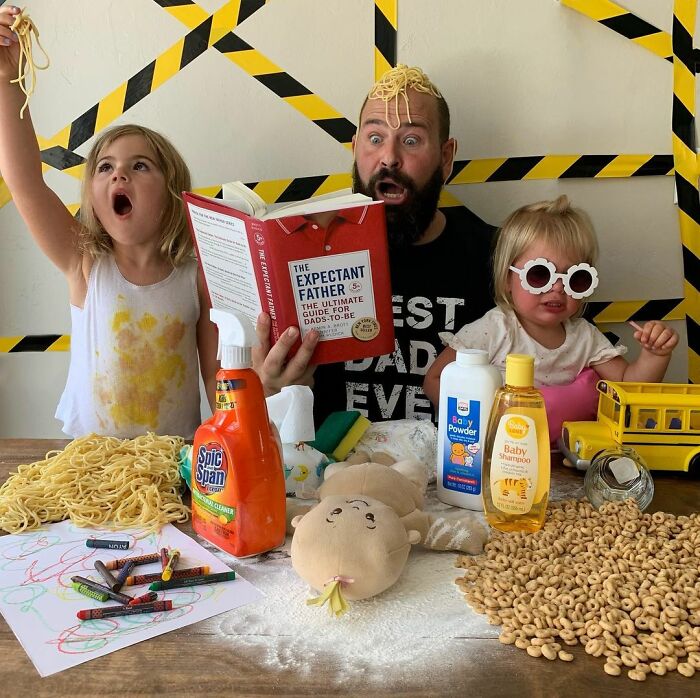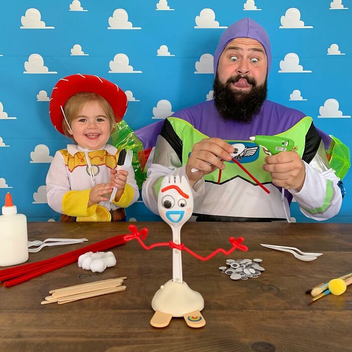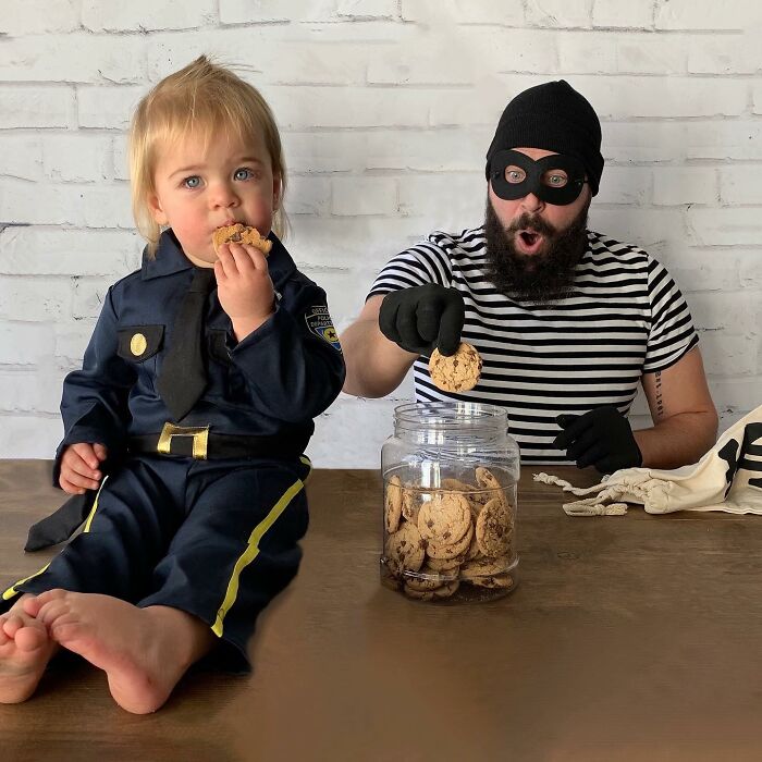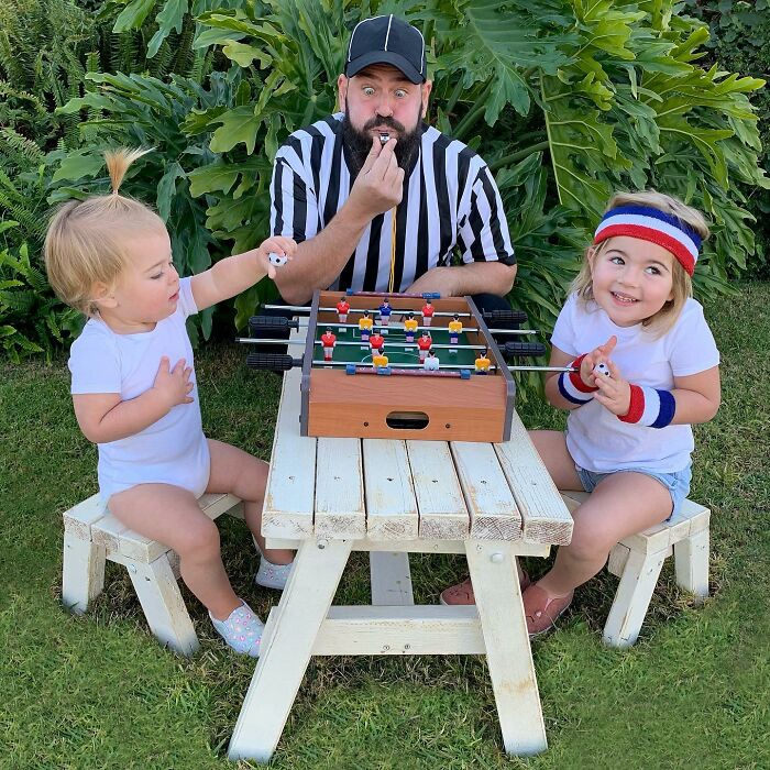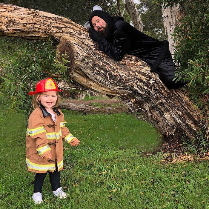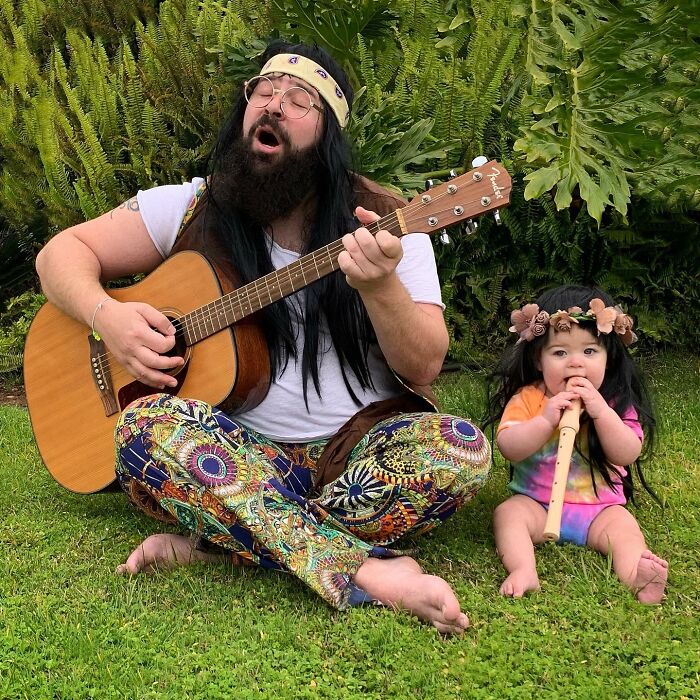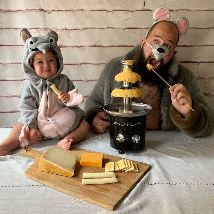 Jugar con los niños o participar en actividades comunes ayuda a fortalecer las relaciones, y por el número de disfraces que ha hecho esta familia, podemos suponer que su vínculo es bastante fuerte. Sholom comentó: "A los niños les encanta hacerse lo que en casa llamamos 'fotos tontas con papá'. Realmente es solo una extensión del tiempo de juego que compartimos juntos, y cuando uno acumula la cantidad de disfraces y accesorios como los que tenemos en nuestra casa, cada momento tiene la posibilidad de ser divertido."