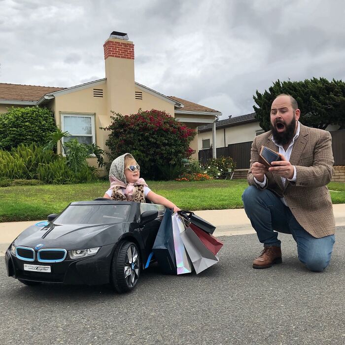 Preguntamos a Sholom por su interés en este tipo de actividades y por su origen. Sholom respondió: "Siempre me ha gustado hacer el tonto y hacer fotos ridículas, pero cuando nació mi primera hija, Zoe, fue la máxima inspiración y una musa, y al instante solo quería hacer fotos divertidas con ella para que tuviera un álbum único que pudiera recordar más adelante". Las ideas para un contenido creativo y divertido con los niños son abundantes y, en realidad, ilimitadas: todo lo que tengo que hacer es pensar en un escenario tonto, ponernos una peluca y vestir a los niños con adorables disfraces, y voilá".