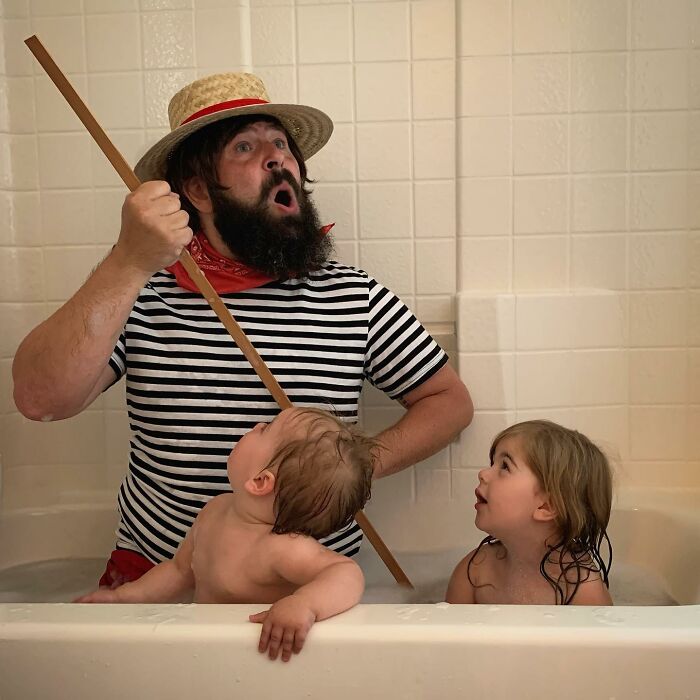 Hace cinco años, un papá llamado Sholom Ber Solomon se hizo viral con fotos de él y su hija haciendo todo tipo de actividades tontas. El vínculo entre papá e hija sigue creciendo, y ahora también incluyen a su hermana Olivia, nacida en 2019, para que participe en sus extravagantes sesiones de fotos. Sus fotos consisten en disfraces, desde mapaches comiendo junto al contenedor de basura hasta sirenas en la piscina.