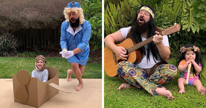 Mira las divertidísimas fotos que este papá se toma con sus hijas disfrazadas (Nuevas imágenes)