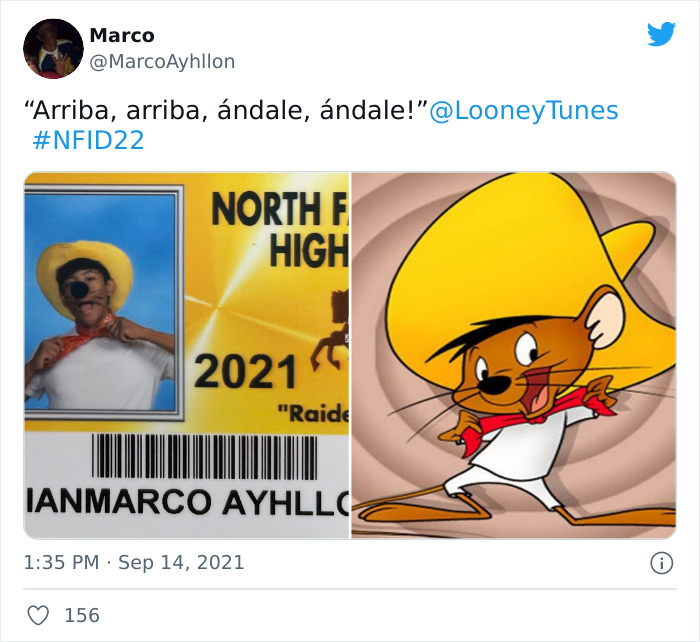 Después de hacerse las fotos de carné, los estudiantes publican fotos de sus disfraces en Twitter. Este año, están usando el hashtag #NFID22, en caso de que tengas curiosidad y quieras echar un vistazo a algunos disfraces de los más impresionantes.