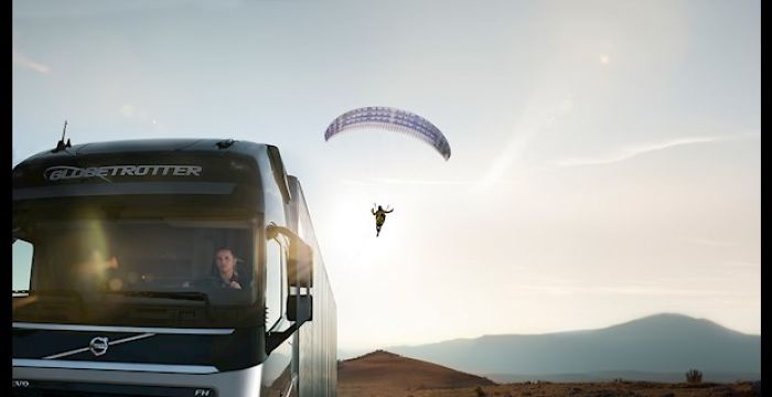 El video pertenece a Volvo Trucks y registra la experiencia protagonizada por un parapentista y una conductora al mando de un Volvo FH, que a lo largo de un sinuoso camino de montaña debe mantener una velocidad alta y constante para sostenerlo en el aire. La prueba que retrata El pasajero con alas, filmado en Croacia, fue ideada para mostrar las prestaciones de la caja I-Shift de doble embrague, exclusiva de Volvo, que ofrece un excelente rendimiento y reduce considerablemente el consumo de combustible.