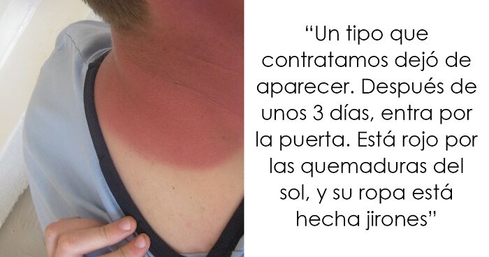 Dirijo un pequeño taller de soldadura. En general, no me importan las comprobaciones de los antecedentes menos limpios ni la marihuana, siempre que se venga a trabajar todos los días y se haga el curro. Encontrar soldadores fiables es difícil, por lo que muchos mierd*s vuelan. Esto a veces te lleva a contratar a empleados raros. Un tipo que contratamos dejó de aparecer. Después de unos 3 días, entra por la puerta. Estaba rojo por las quemaduras del sol, y su ropa estaba hecha jirones. El tipo estaba bebiendo en una pequeña embarcación de aluminio y de alguna manera se perdió en el mar. Se parecía a Tom Hanks en Náufrago. No tenía cobertura en el móvil, así que no pudo llamarme. Sin embargo, tomó un montón de fotos durante los pocos días que estuvo perdido en el mar. Incluyendo una en la que era rescatado por los guardacostas. Le di el resto de la semana libre. Los guardacostas lo llevaron al hospital, se dio de alta e inmediatamente vino a trabajar. Ni siquiera fue a casa a ducharse. Un tipo raro.