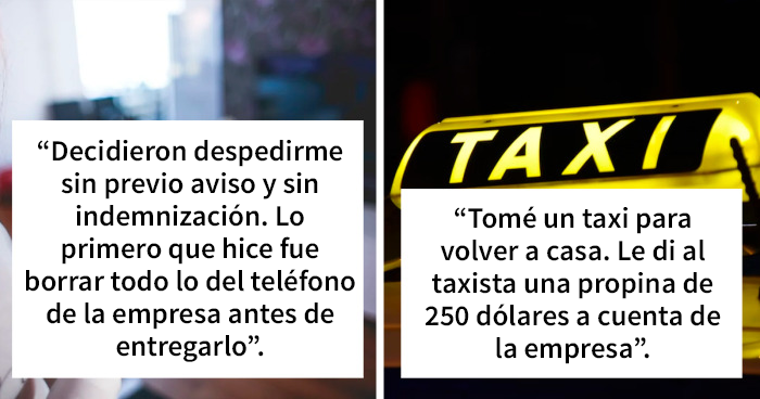 Tomé un taxi para volver a casa tras ser despedido injustamente. Le di al taxista una propina de 250 dólares a cuenta de la empresa.