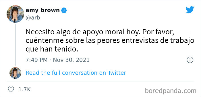 Y nada ejemplifica mejor esta cuestión que un reciente hilo de Twitter que comenzó cuando Amy Brown, de California, buscó apoyo moral y les pidió a los demás usuarios que hablaran sobre sus peores entrevistas de trabajo. Resulta que eso fue todo lo que se necesitó. Tanto los reclutadores como los solicitantes empezaron a contar las historias desastrosas de las que fueron parte.