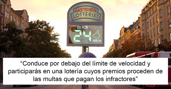Conduce por debajo del límite de velocidad y participarás en una lotería cuyos premios proceden de las multas que pagan los infractores. Velocidad media reducida de 32 km/h a 25 km/h (una reducción del 22%).