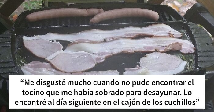Me disgusté mucho cuando no pude encontrar el tocino que me había sobrado para desayunar. Lo encontré al día siguiente en el cajón de los cuchillos.