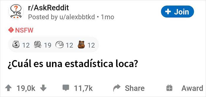 En octubre, el redditor u/alexbbtkd preguntó a otros usuarios de la plataforma: "¿Cuál es una estadística loca?" y ha recibido un montón de respuestas. Las hemos revisado todas y hemos seleccionado las más sorprendentes para ampliar tus horizontes. Así que ponte la gorra de pensar, toma un cuaderno y ¡disfruta!