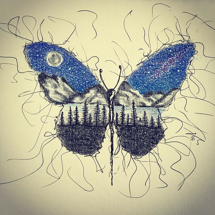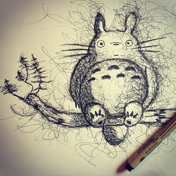 Así que tras ese error comenzó mi viaje con este nuevo estilo. Empecé a hacer dibujos con «manos temblorosas», como lo llaman mis amigos. Pero ahora sé que se llaman garabatos.