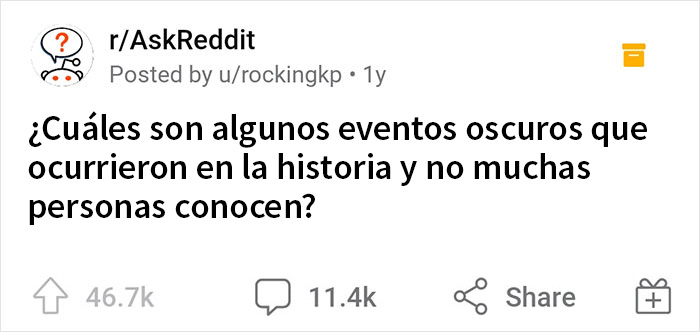 A menudo aplaudimos y brindamos por los héroes históricos que mostraron bondad y valor para hacer la sociedad un poco mejor. Pero, por desgracia, no hay que olvidar que no todas las partes de nuestro pasado merecen ser celebradas. Así que el usuario rockingkp se puso en contacto con sus compañeros de Ask Reddit para saber más sobre los oscuros e inquietantes acontecimientos históricos que poca gente conoce.