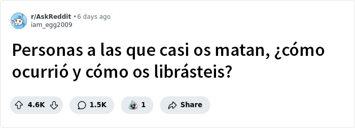 Algunas de estas personas, que probablemente nacieron con un ángel de la guarda, compartieron sus historias en un hilo iniciado por un miembro de la comunidad «Ask Reddit». El Redditor se dirigió a los internautas que han estado a punto de perder la vida, preguntándoles no sólo cómo se desarrollaron sus situaciones, sino también cómo consiguieron salir de ellas. Si te interesa leer sus historias, sigue bajando para encontrarlas en la siguiente lista, pero cuidado: algunas de ellas pueden ser muy perturbadoras.