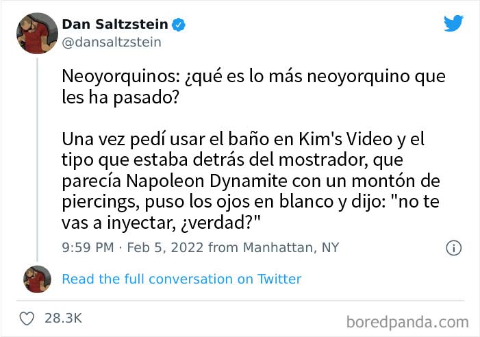 El escritor, historiador y curador Hugh Ryan, que contribuyó a este hilo con un hilarante tuit sobre una drag queen, creció en los suburbios de la ciudad pero su familia es del Bronx. "He vivido en Nueva York durante más de 20 años", dijo Ryan a Bored Panda. "Me encanta la corriente constante de lo inesperado, el modo en que nunca estás seguro de lo que te deparará incluso un simple viaje en metro".
