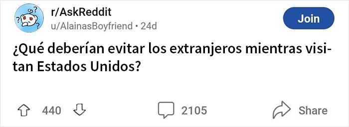 Interesado en cómo protegerse de esto, el usuario de Reddit AlainasBoyfriend publicó una pregunta en la plataforma, preguntando a los lugareños: "¿Qué debe evitar un extranjero cuando visita los Estados Unidos?" Aquí están las respuestas más populares que ha recibido.