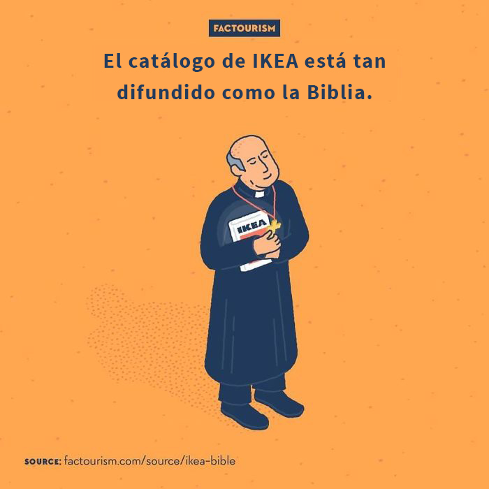 El catálogo de IKEA está tan difundido como la Biblia. Con ediciones que llegan a más de 200 millones de impresiones, el catálogo de IKEA puede considerarse un bestseller (en el caso de que lo vendieran, claro). Es uno de los libros más impresos junto con la Biblia, el Corán y Harry Potter.