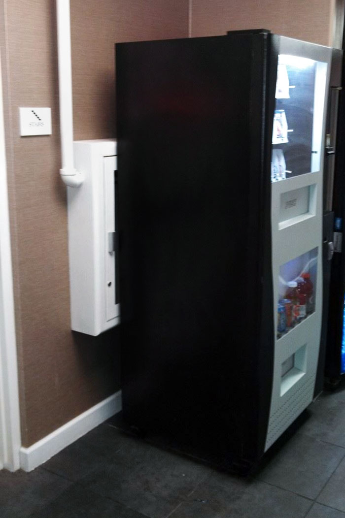 En caso de incendio en el hotel, mueva la máquina expendedora