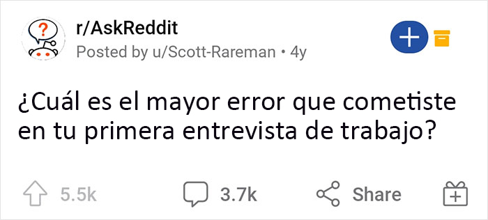 Desplázate hacia abajo, vota tus respuestas favoritas y, con suerte, cuando termines de leer este artículo, te sentirás un poco mejor si tu entrevista se torció. Después de todo, siempre puede ser mucho peor.