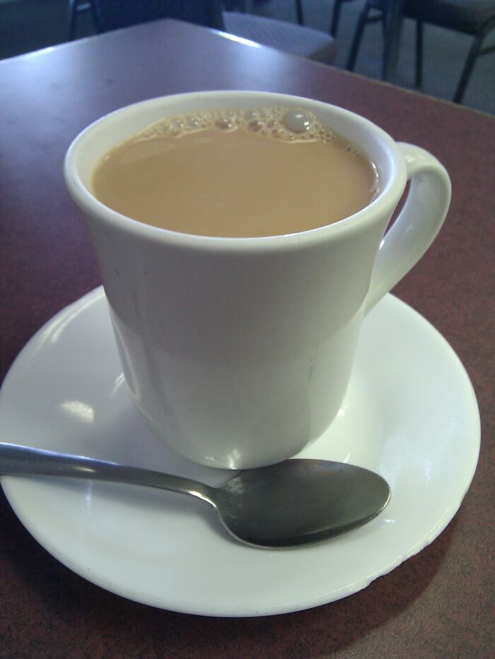 Trabajé en un restaurante durante el verano hace unos 17 años. Estaba repartiendo tazas de café con una compañera de trabajo.