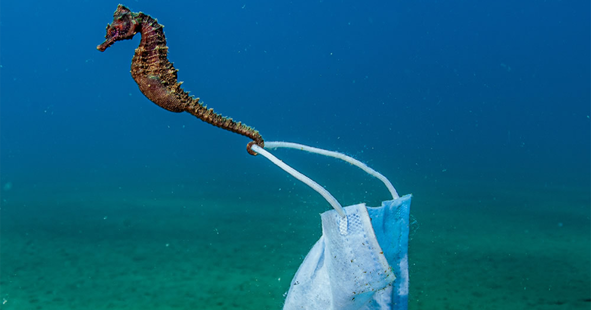 "Un caballito de mar se aferra a una mascarilla (en Stratoni, Grecia)"