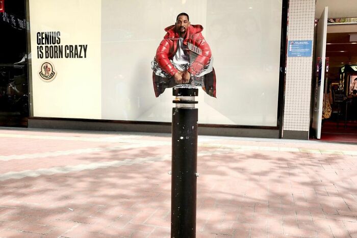 Sus divertidas fotos usan de forma ingeniosa el fondo y el primer plano. En muchos casos, cuesta saber cuál de ambos es lo principal en la imagen: Ya sea un hombre frente a un poster que le hace parecer que tiene el peinado de Goku, o alguien caminando con un calzado que se parece a unos peces pintados en el suelo, la "danza" entre ambas cosas es a menudo lo que da sentido a la imagen.