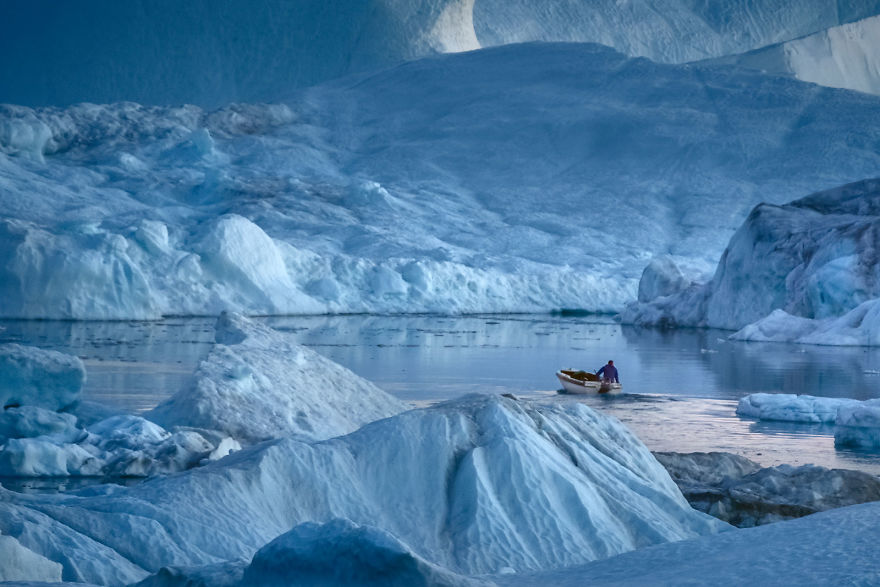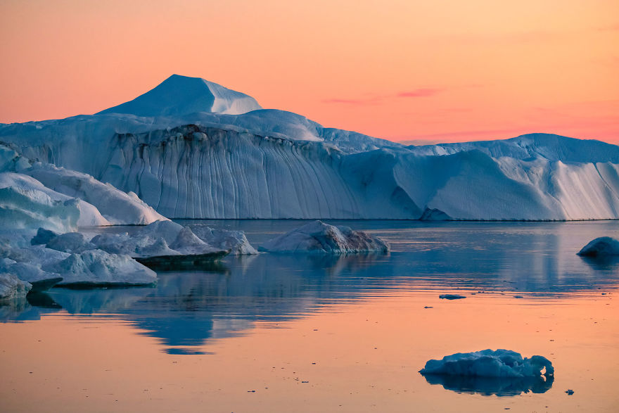 Hay una zona que me resulta especialmente atractiva: el fiordo de hielo de Ilulissat. En verano, me encanta llegar hasta allí hacia la medianoche, sentarme con un termo lleno de café caliente y escuchar el desprendimiento de los icebergs mientras se adentran en el océano.