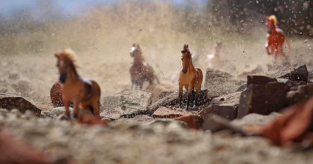 Observando a los niños, me di cuenta de cómo son capaces de crear imágenes visuales en su mente mientras juegan y cómo los juguetes cobran vida en sus manos. Así que intenté capturar esas imágenes con mi cámara y encontré una nueva perspectiva (bastante literal, en realidad) de la situación y miré el mundo de la forma en que mis hijos lo hacen a diario. Comenzó como un juego divertido para mí y mis hijos para crear estas pequeñas historias, mediante la búsqueda de lugares perfectos. Y así, un trozo de tierra se convirtió en un desierto, la hierba joven se convirtió en la selva, un hormiguero para nosotros parecía un campo de batalla. Todos los juguetes cobraron vida.
