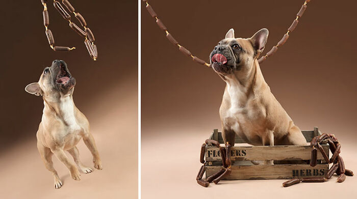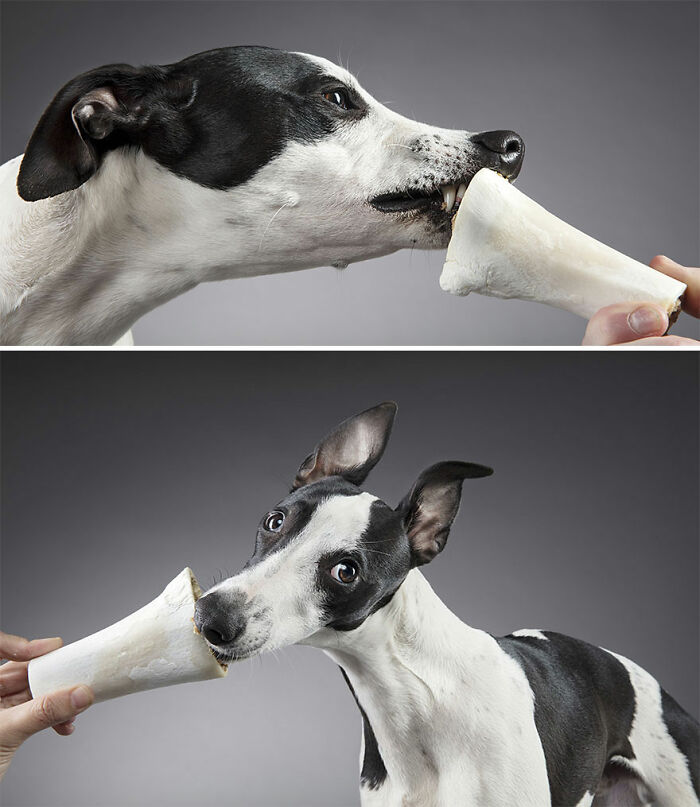 Quería ver cómo reaccionaban los perros tras darles un premio, asi que hice esta serie de fotos (10 imágenes)