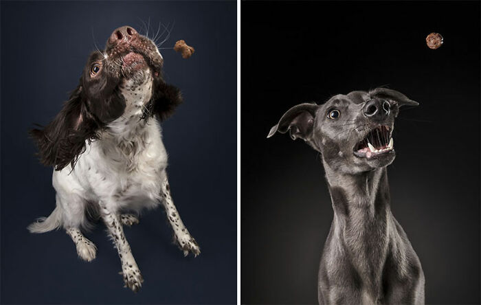 Estos perros eran los mejores cazadores de recompensas, pero nadie es perfecto. Si alguien ha visto fotografías de captura de golosinas o lo ha intentado por sí mismo, sabe que necesita el equipo adecuado y una sincronización impecable. Las luces del estudio pueden congelar movimientos increíblemente rápidos y, con la práctica (y un poco de suerte), se puede capturar esa toma perfectamente sincronizada.