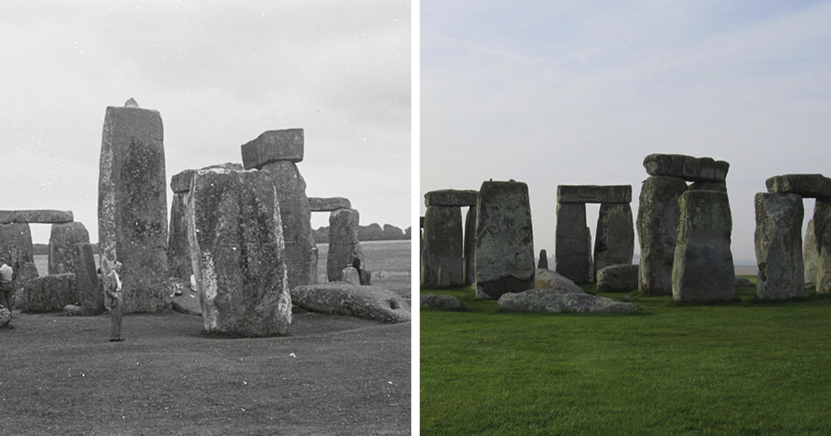 Stonehenge en Wiltshire, Inglaterra. Antes vs. 2019