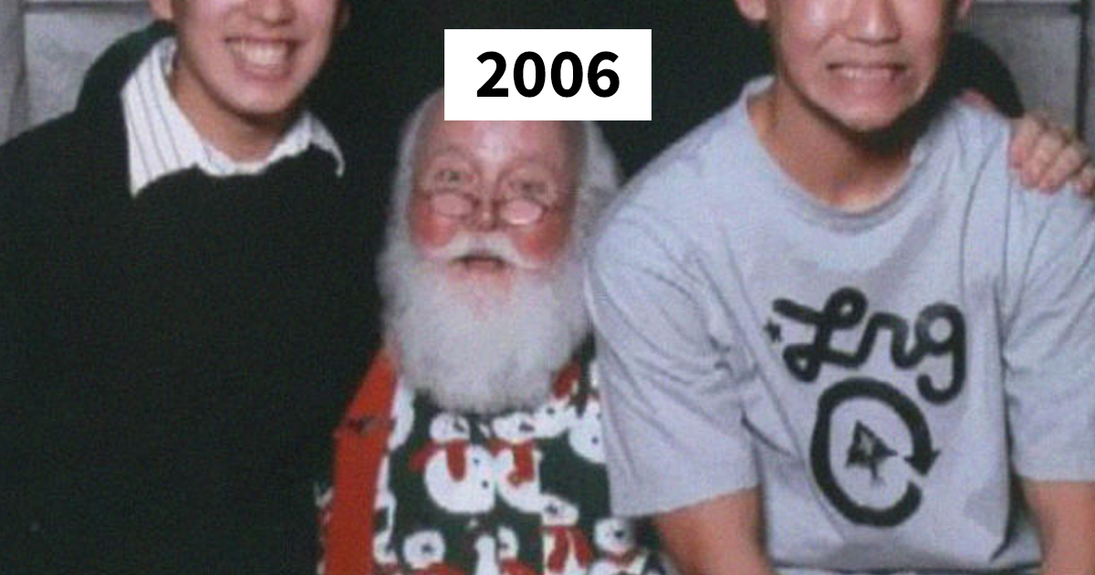 Hacerte una foto en el regazo de Papá Noel es una tradición de hace ya, y resulta que no es solo para niños. Estos 2 chicos estaban en el centro comercial Alderwood Mall de Lynnwood en 2006 y decidieron divertirse. Posaron en una graciosa foto con el icónico Papá Noel y así nació una tradición que sigue hasta hoy.