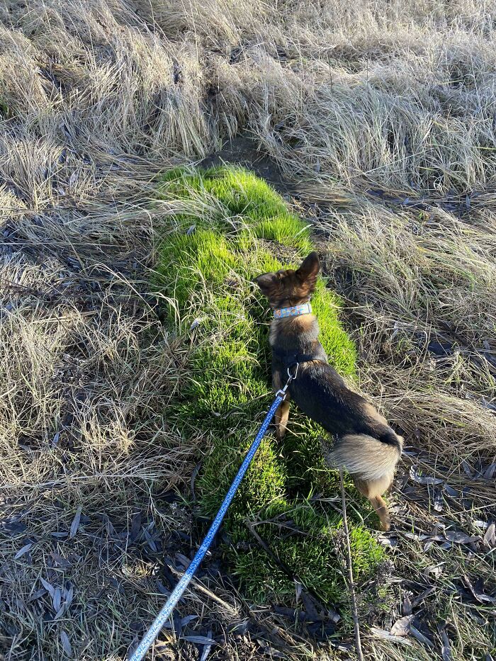 Parche de hierba en forma de humano, donde todo lo demás se ha secado