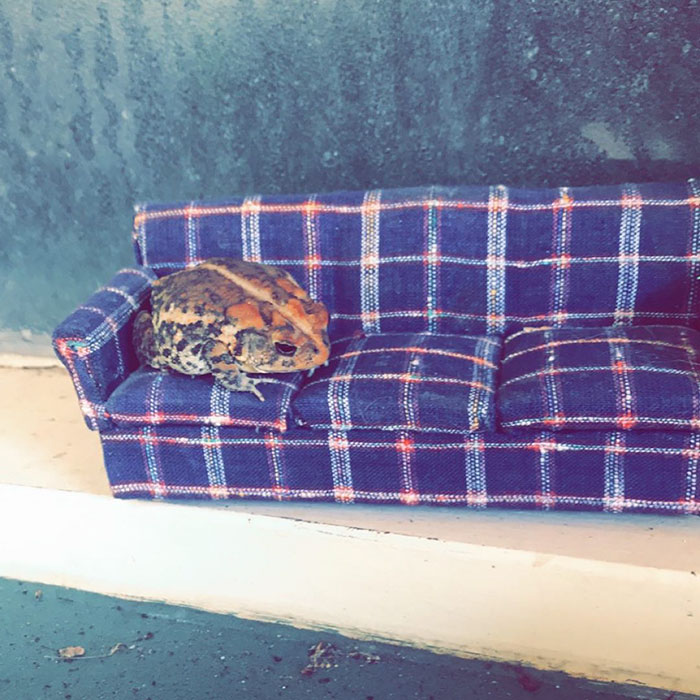 Esta mujer fotografía a su sapo haciendo cosas en una casa de muñecas, y a la gente le encanta (8 fotos)