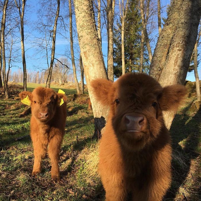Estas son las vacas de la raza Highland. Viven en Escocia y resaltan por su largo pelaje ondulado. Tienen una capa superior larga y grasienta, la más larga de todas las razas de ganado, y una inferior más aterciopelada. Esto les permite soportar las duras condiciones climáticas de las Tierras Altas escocesas, donde son comunes los chaparrones y los fuertes vientos. Y también significa que los terneritos que tienen son de lo más peludos y adorables. Aquí hemos recopilado una lista de estos irresistibles pequeños que te darán ganas de achuchar. ¡Vota por tus favoritas!