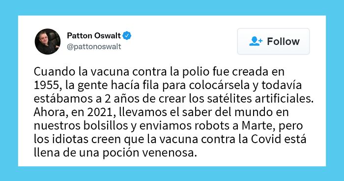 No estoy en contra de las vacunas , pero si, desconfio de las intenciones del gobierno, en especial el gringo, queres que te cuente lo que hiso en guatemala con los experimentos de sifiilis. No porque es ciencia que se debe de creer con los ojos cerrados Es justamente esa la base de la ciencia dudar y poner a prueva todo