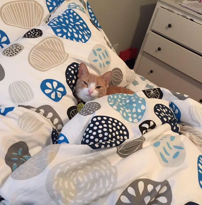 A los gatos les agrada el calor, y comprenden que acostarse debajo de una manta o de unas sábanas será cálido para dormir. Por supuesto, para sus dueños, este tipo de imagen es lo más adorable del mundo, y algunos de ellos serán los primeros en arropar a sus gatos como si fuesen sus hijos.
