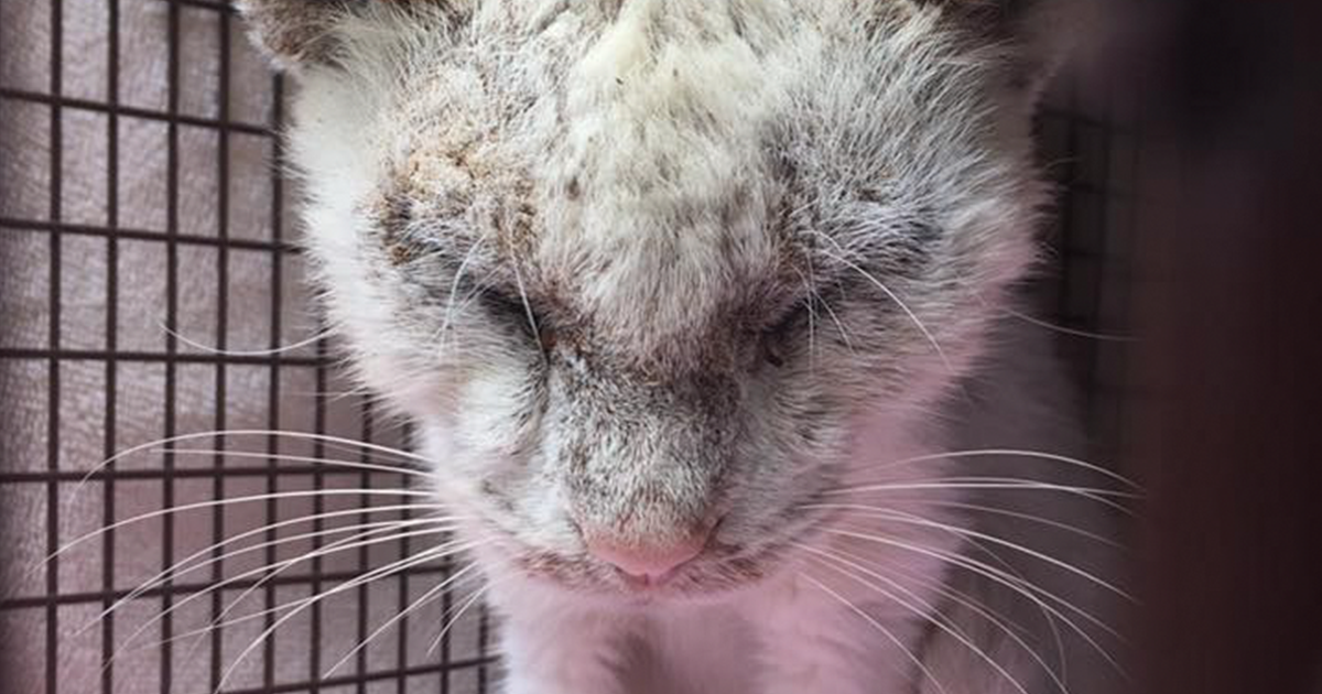 El hombre pidió ayuda para el gato en Facebook, y entonces apareció Weinberg. «Fui a recogerlo por la mañana temprano, lo llevé a mi veterinario y confirmaron que sufría de sarna.»