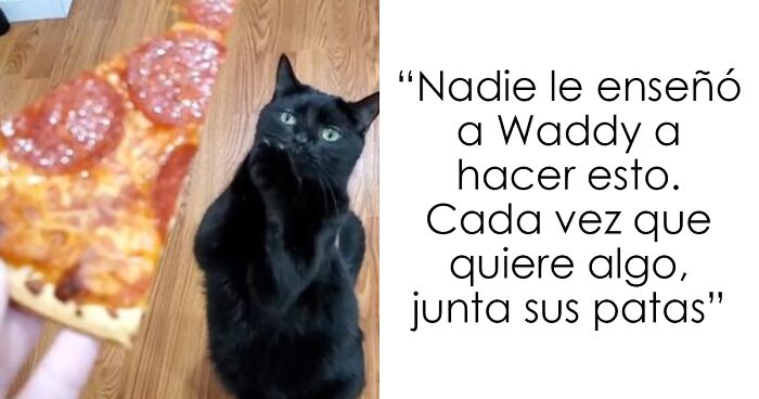 Waddy es la definición literal de un mendigo cuando se trata de su comida favorita: para llamar la atención de sus dueños, el gato negro junta sus patas y las agita hasta que, finalmente, obtiene su recompensa