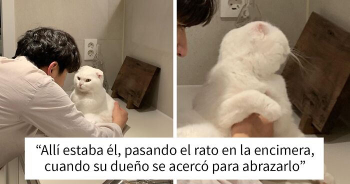 Allí estaba él, pasando el rato en la encimera, cuando su dueño se acercó para abrazarlo