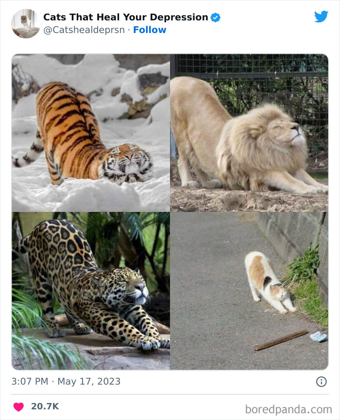 En la cuenta de Twitter “Cats That Heal Your Depression” (Gatos que curan la depresión) se puede encontrar una gran colección de fotos de felinos que nos hacen decir “Awww”. Dedicada a algunas de las criaturas más adorables que existen, todos los días publica contenido conmovedor para sus seguidores (con casi 448.000 en este momento) desde que se creó en 2021. Deslicen hacia abajo para ver las fotos compartidas por la cuenta y comprueben por ustedes mismos lo adorables que pueden llegar a ser los gatos.