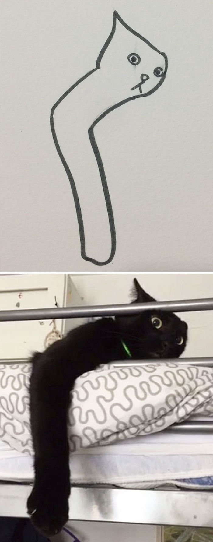 Si le enseñas a alguien estos dibujos y le dijeras que son representaciones meticulosas de gatos, seguro que se reirían de ti. Pero lo cierto es que en realidad son cuasiperfectas imágenes de nuestros peludos felinos. Vale, son un poco abstractos, y con algunas hay que usar un poco la imaginación, pero al ver las fotos originales que las inspiraron, verás que se parecen más a la realidad de lo que imaginabas. Fueron dibujadas por Heloisa, una artista brasileña que publica sus creaciones en el twitter Poorly Drawn Cats. ¿Cuál te gusta más?
