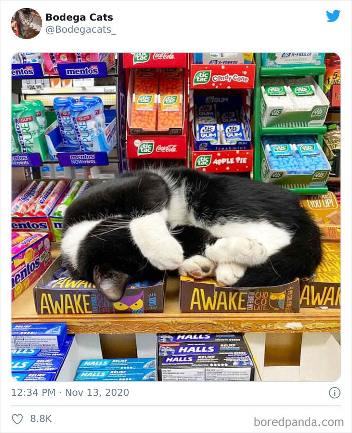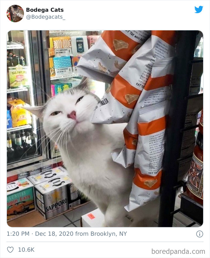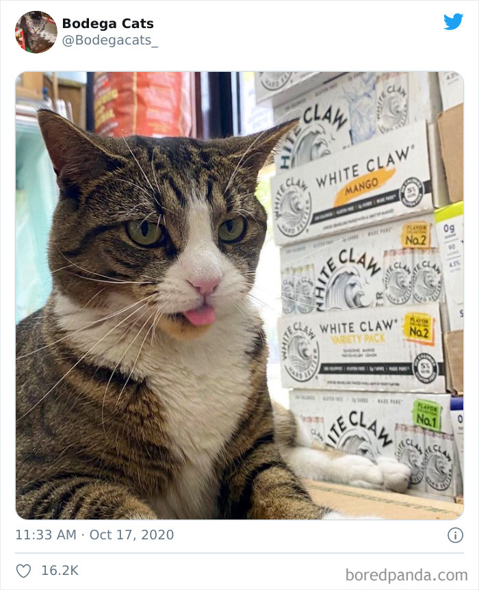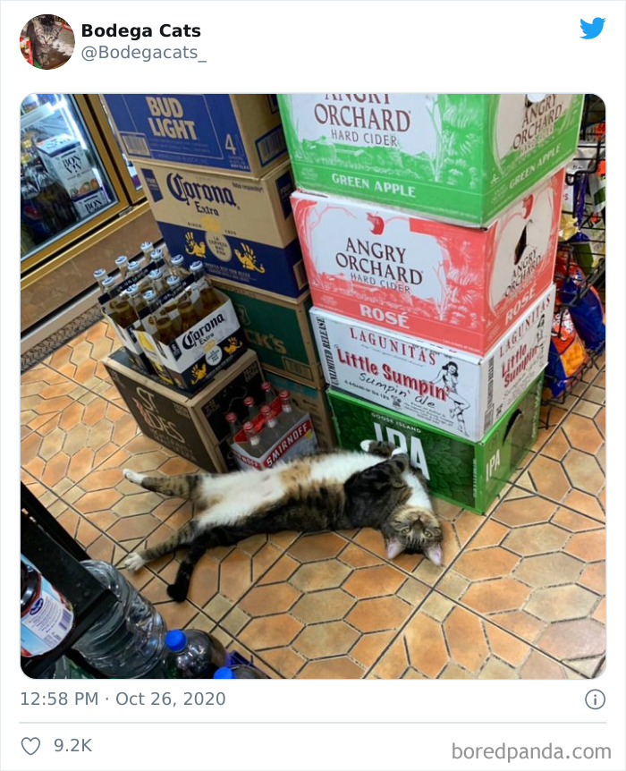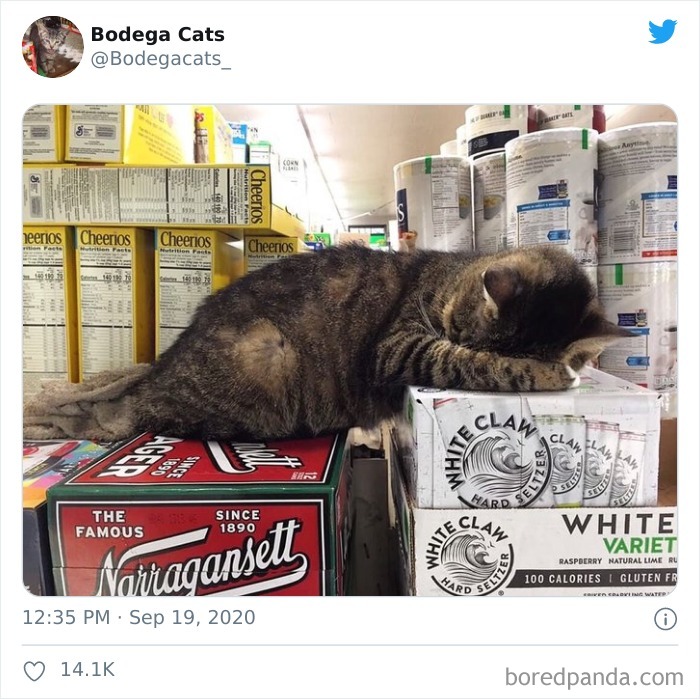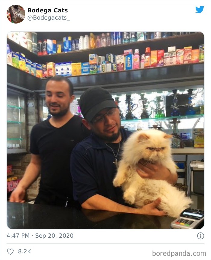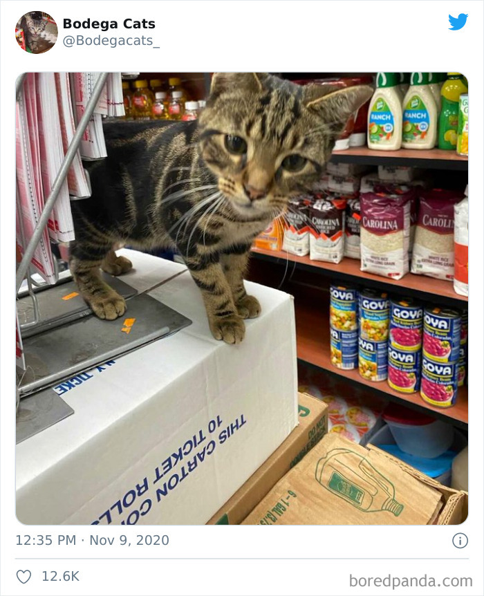 Bodega es como llaman en Nueva York a las tiendas de conveniencia, y estos gatos son como una subcategoría de felinos atípicamente sociables que habitan en estos lugares, y no son ni muy grandes ni muy pequeños. Gracias al proyecto Bodega Cats en redes sociales (que ya tiene 462500 seguidores en Twitter y 298000 en Instagram), los usuarios podemos disfrutar de una colección aparentemente interminable de gatos que son dueños y señores de sus bodegas.