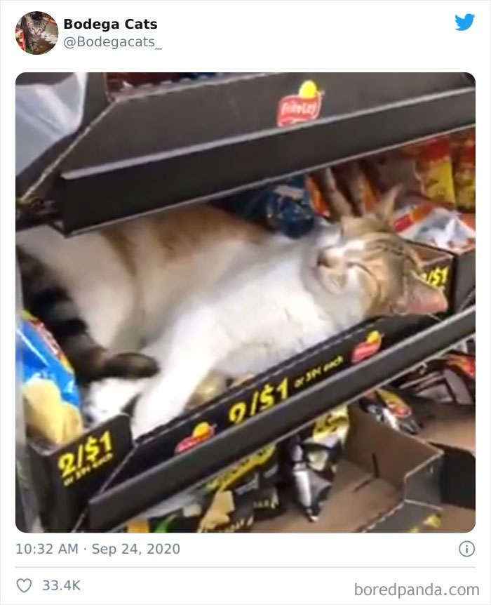 Esta cuenta de Twitter colecciona fotos de gatos en tiendecitas actuando como si fueran los dueños (50 fotos nuevas)