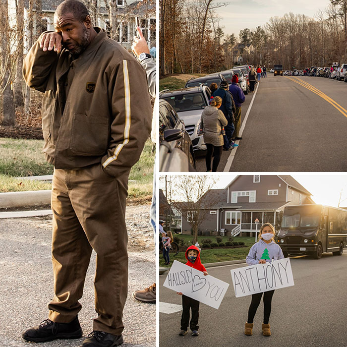 Este conductor de UPS repartió casi 200 paquetes al día durante las cuarentenas y las navidades. Esta semana, cientos de vecinos salieron a saludarle como un héroe