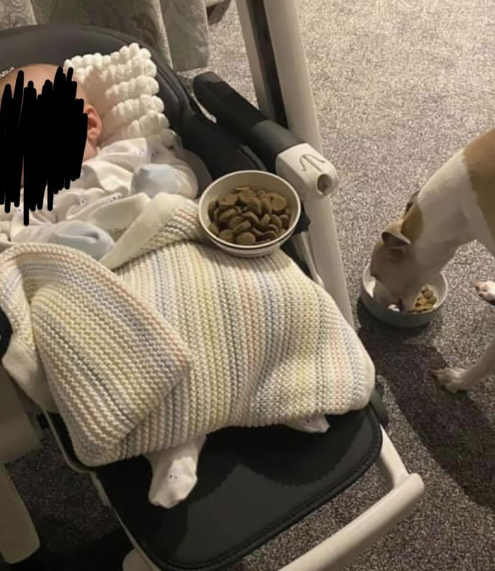 A este perro le preocupaba no ver nunca comer al bebé