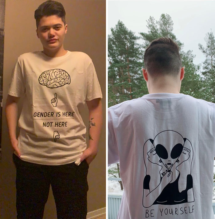 Mi padre ya no es tránsfobo. Ha sido mi cumpleaños y me ha regalado esta camiseta. Estoy llorando