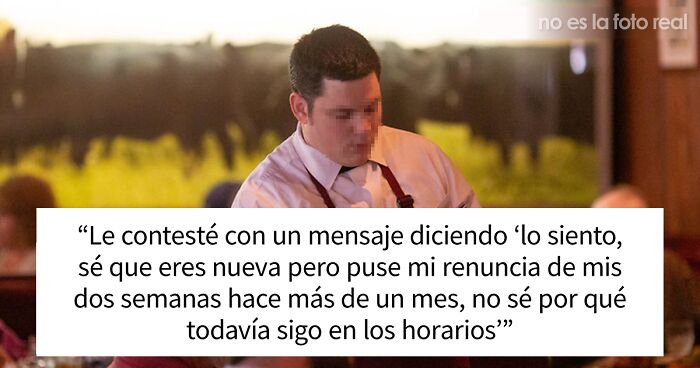 Pero después de esas dos semanas, la autora recibió una notificación con su horario de trabajo en el restaurante. Decidió llamar al restaurante y avisarles de que debían programar a otra persona porque ella ya no trabajaba ahí.