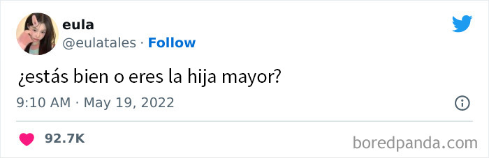 Ser el primogénito suele conllevar bastantes responsabilidades. Suelen ser la mano derecha de los padres en casi todo, convirtiéndose en la columna vertebral de la familia. Así lo atestiguan numerosos primogénitos, y sus tuits lo demuestran mejor que ninguna otra cosa. Es hora de escuchar las voces de las hijas mayores, y hoy, eso es exactamente lo que estamos haciendo. Hemos encontrado sus mensajes de Twitter que mejor describen todo lo que implica ser la mayor de los hijos y una hija. Desplázate hacia abajo para encontrarlas y familiarizarte con lo que significa ser la abanderada de tus hermanos.
