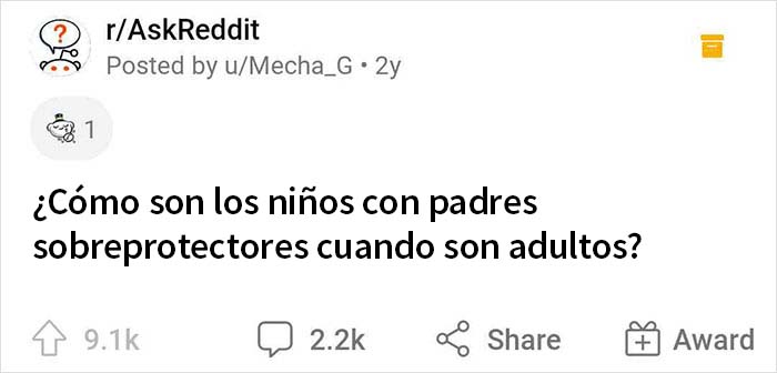 Recientemente, alguien en Ask Reddit llamó la atención sobre este tema y preguntó a la gente "¿Cómo son los niños con padres sobreprotectores cuando son adultos?" Las historias empezaron a llegar una a una, y es una lectura reveladora y que invita a la reflexión para la que querrás acercarte a tu asiento.