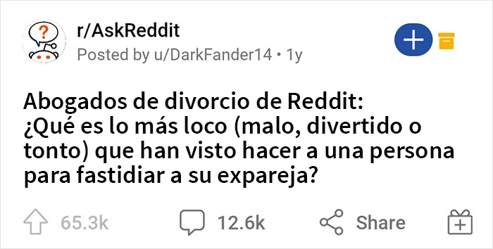 No es de sorprender que cuando el usuario DarkFander14 le pidió a los abogados que compartieran las historias más locas que conocían sobre cónyuges que trataron de fastidiarse mutuamente, las anécdotas no tardaron en llegar. Esta publicación recibió más de 12.6 mil comentarios que revelaron de forma anónima las cosas más locas y crueles que algunas personas intentaron hacer para molestar o aprovecharse de su expareja.